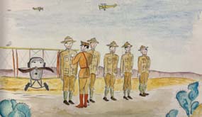 Frank Gurrier served with the 349th Aero Squadron during World War I. Gurrier received his pilots’ training at Kelly Field, Texas in 1917. During this time, Gurrier trained in the Curtis JN-4 (Jenny). After training at Kelly Field, Gurrier and the rest of the 349th deployed to England to support the allies in the war. During training and deployment, Gurrier showcased his artistic side by depicting crashes and other events with small drawings and pencil etchings. Gurrier witnessed and endured multiple crashes during his training and deployment, but returned safely to the United States at the end of World War I. During his time with the Army Air Service and after the War, Gurrier became fascinated with the history of aviation and began collecting articles and pictures that documented flight history beginning in 1903.